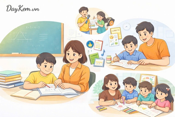 Tùy theo nhu cầu từng gia đình — học yếu cần kèm lại, học khá muốn nâng cao, hay luyện năng khiếu — mỗi trung tâm sẽ có cách tổ chức lớp, phương pháp và môi trường học khác nhau.